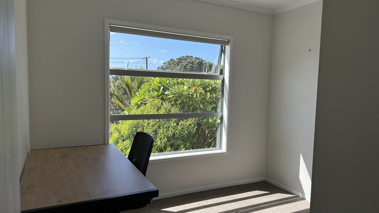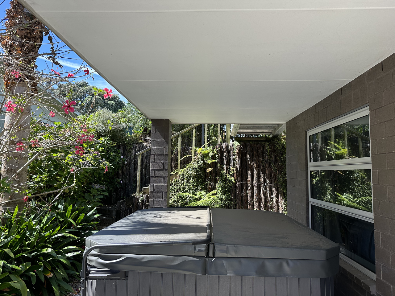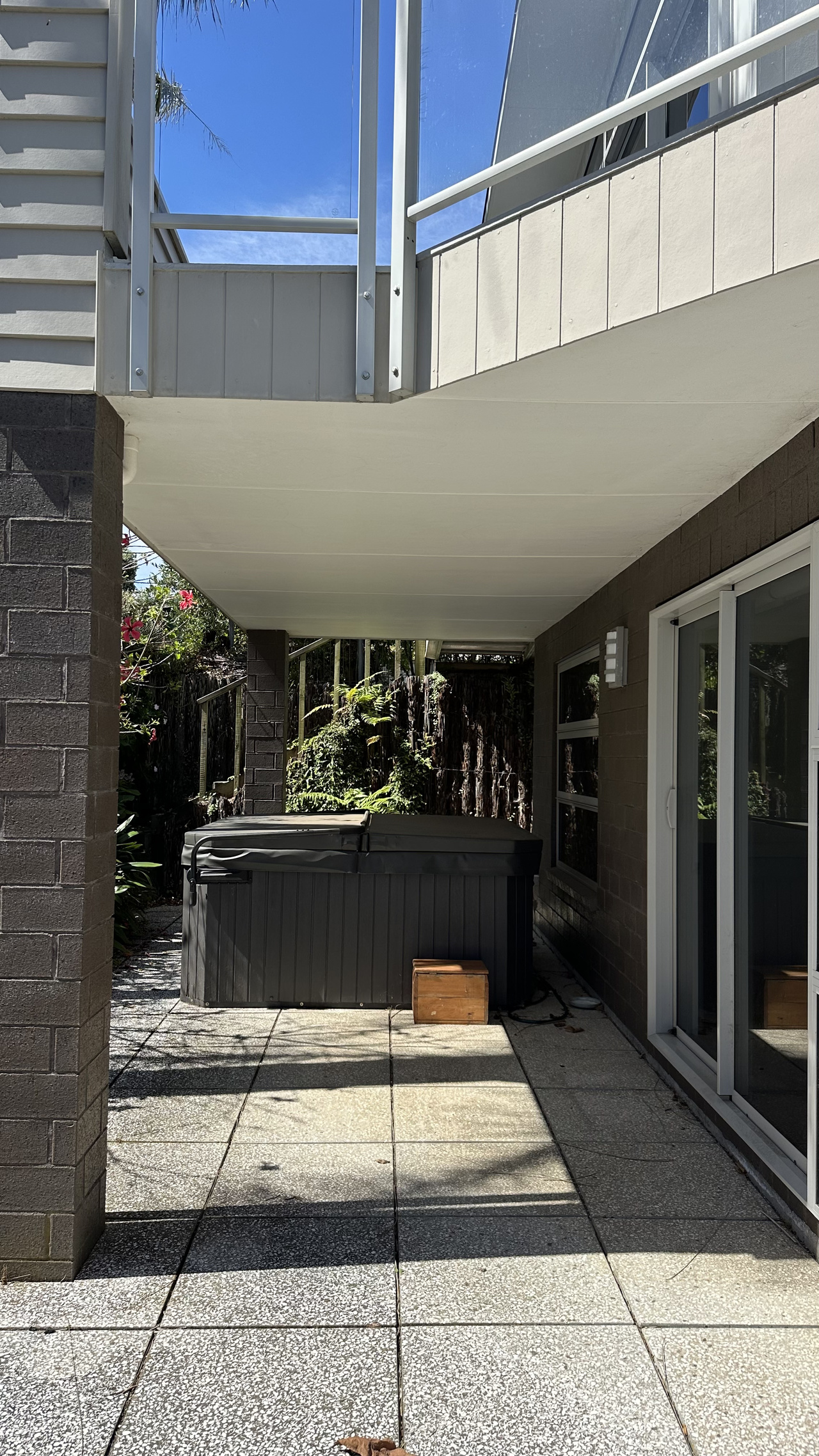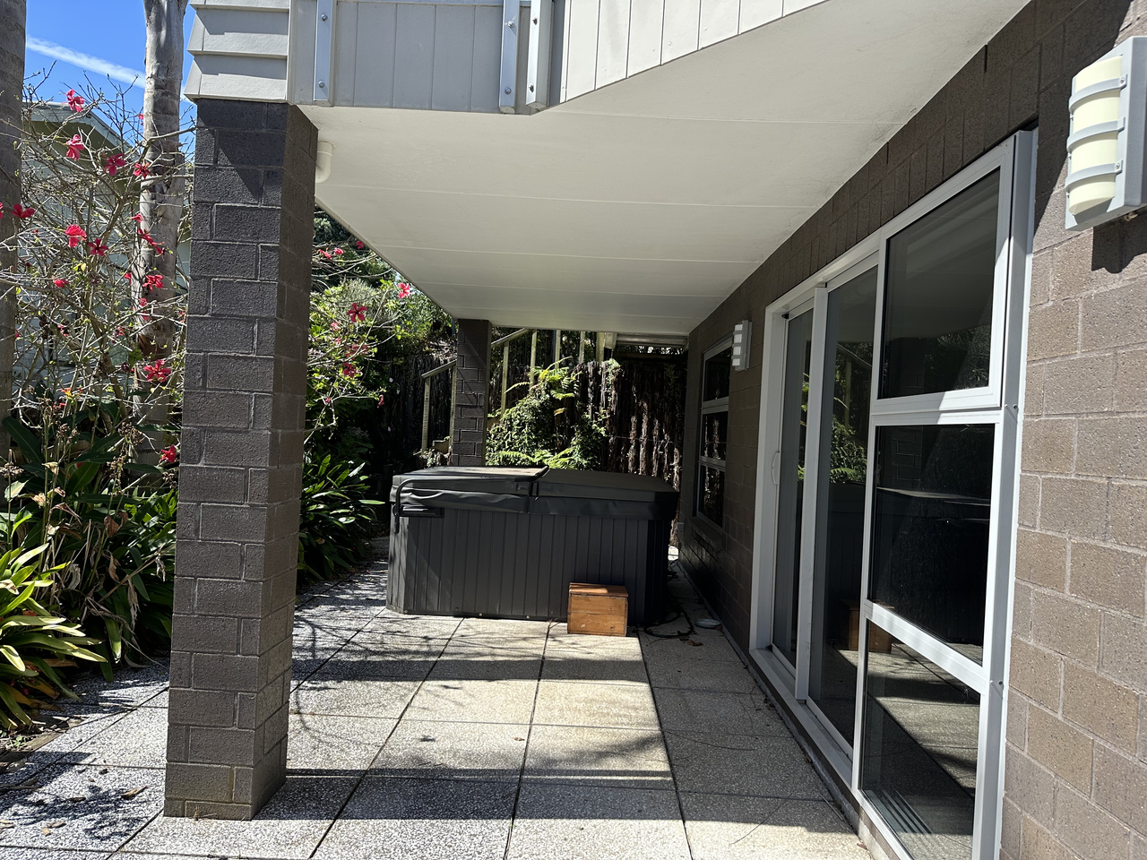 A second bedroom with a king bed in it, and drawers and a closet with plenty of space to hang clothes. This bedroom is less recommended to use, as it is closer to the spa pool and a bit noisier.