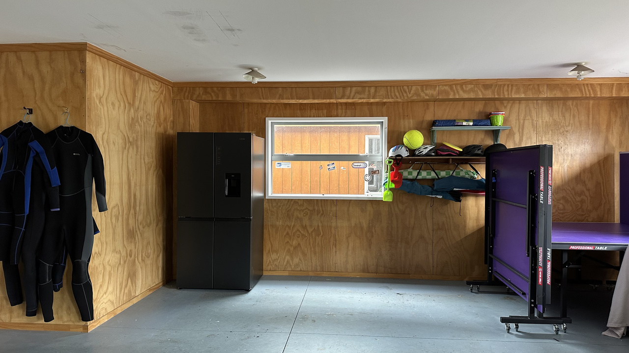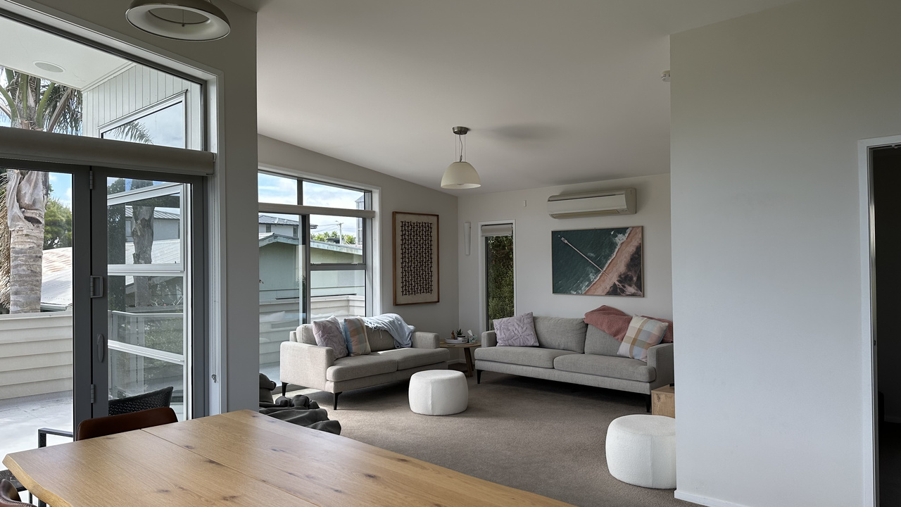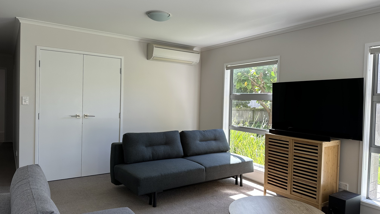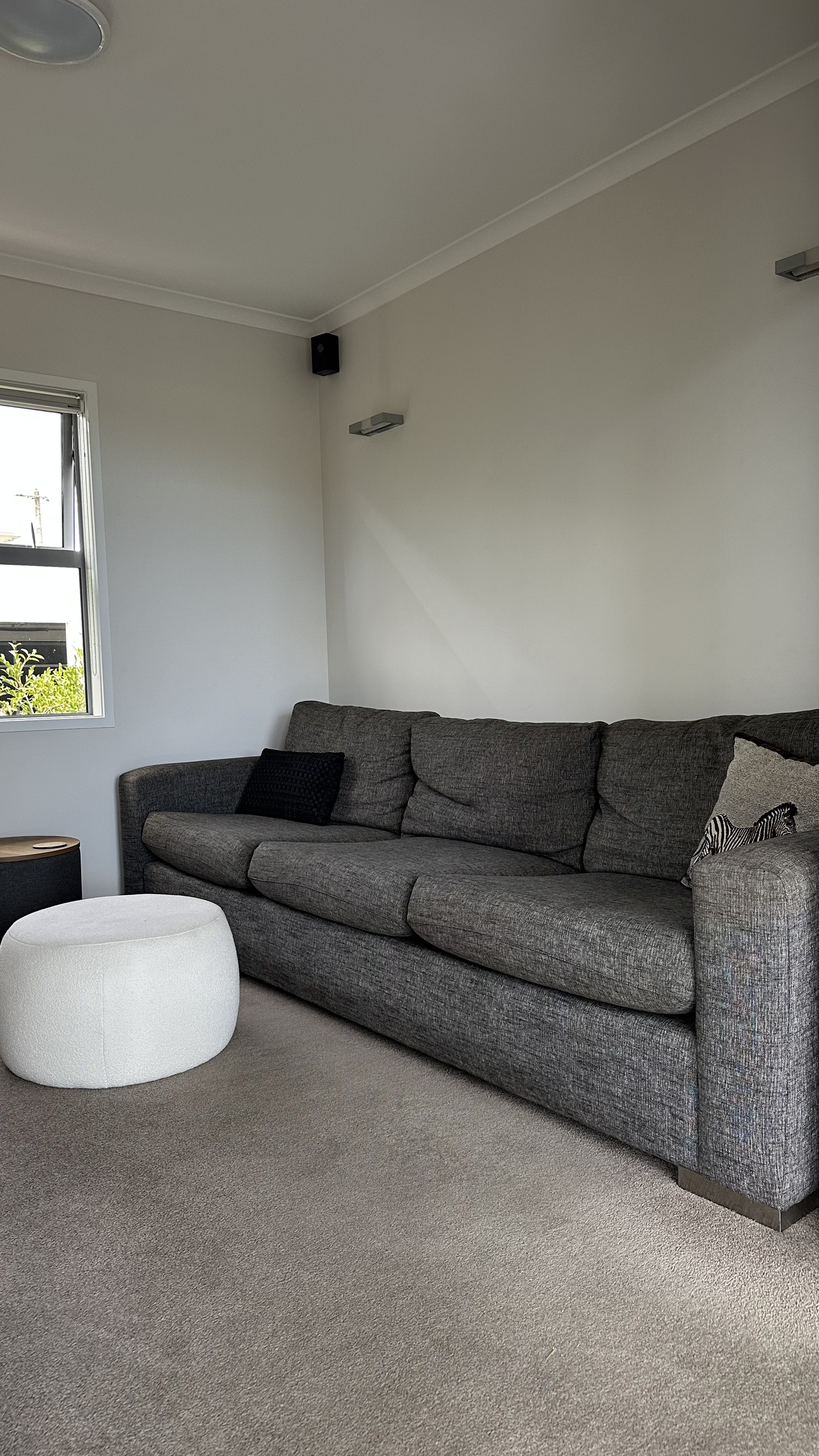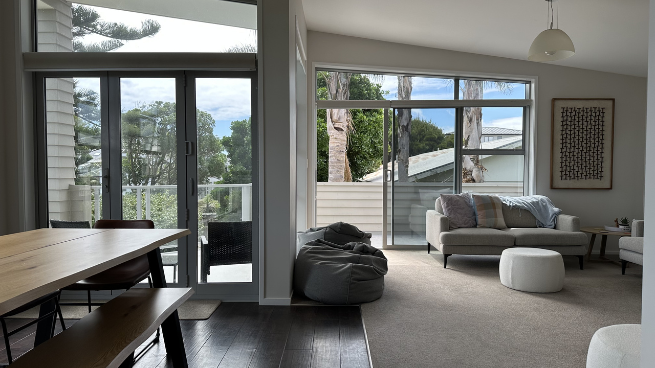 The downstairs consists of the garage on one side, and on the other side two bedrooms with a king bed in them each. There is also a bathroom and toilet, as well as a lounge area that has two couches that can fold down and be used as beds. For guests staying at Molesworth Street, it is recommended that the downstairs bedrooms be used.
