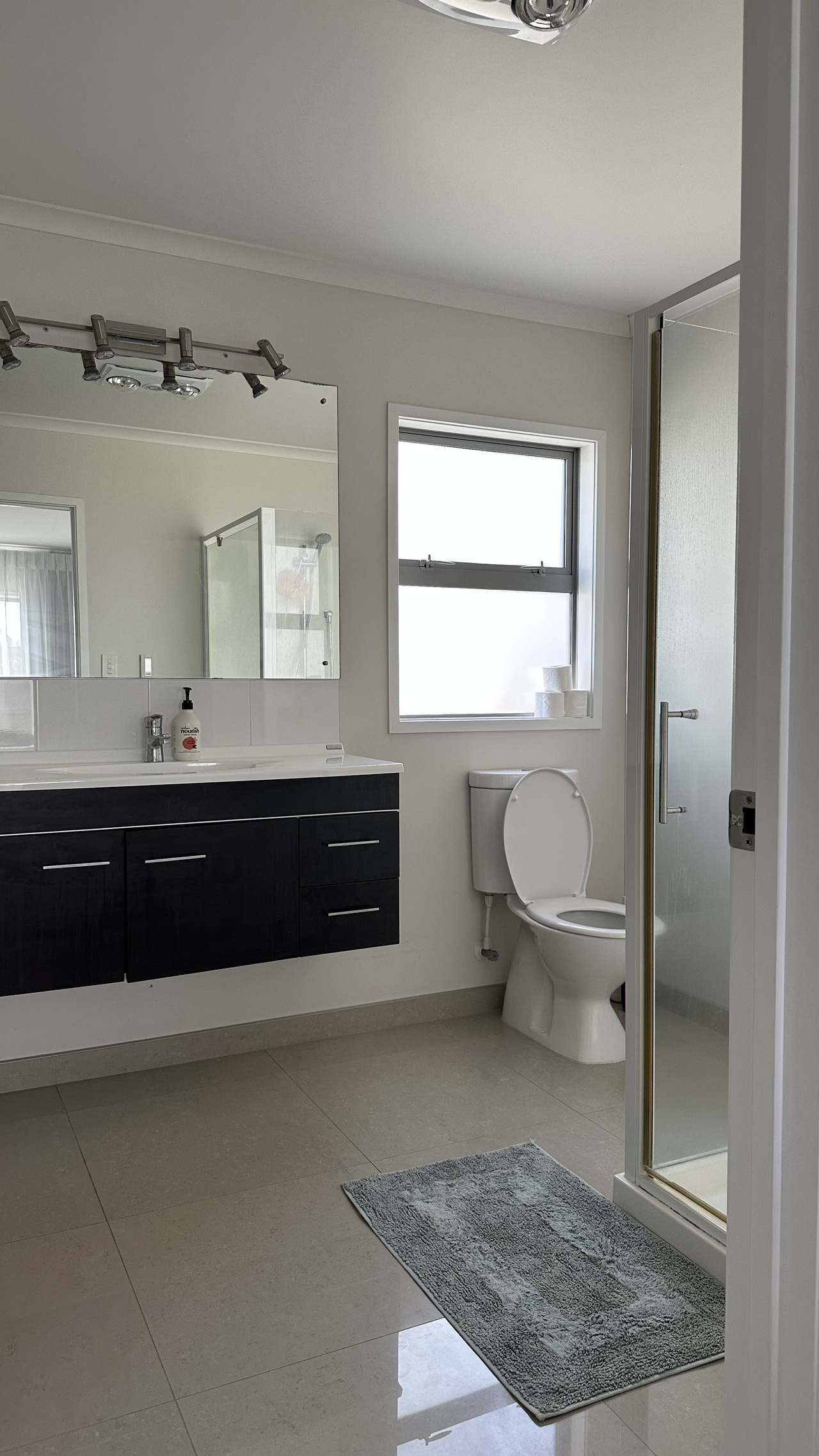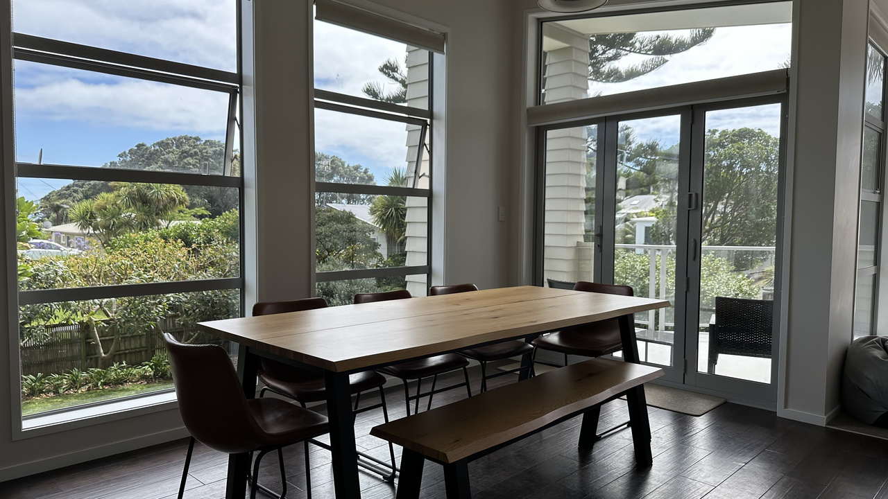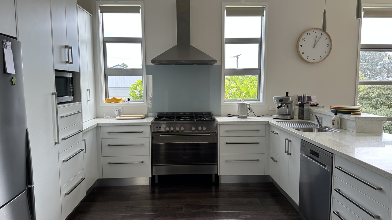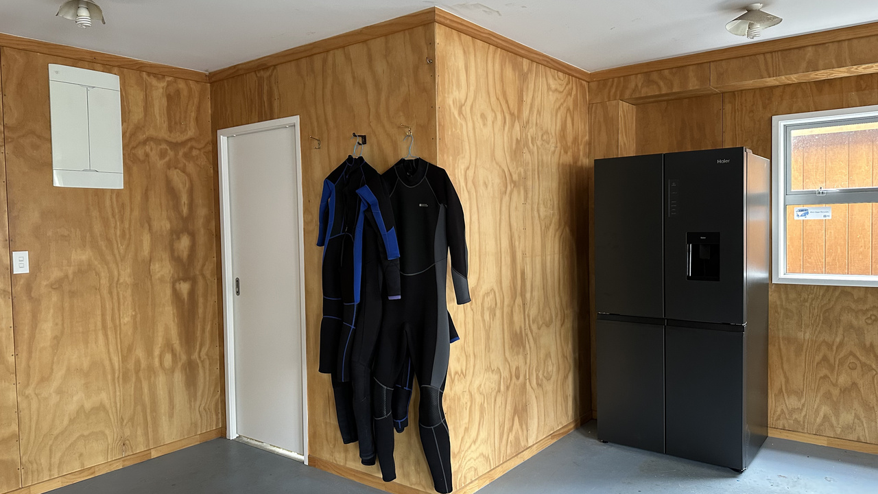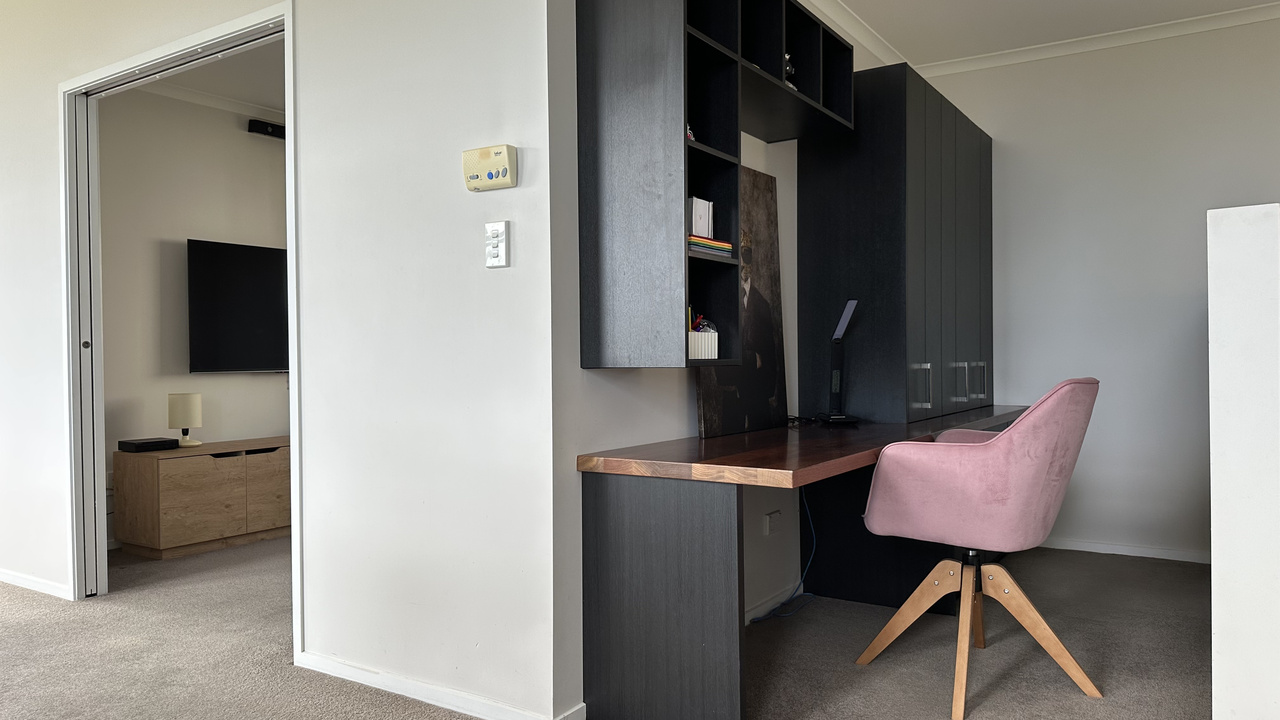 The downstairs consists of the garage on one side, and on the other side two bedrooms with a king bed in them each. There is also a bathroom and toilet, as well as a lounge area that has two couches that can fold down and be used as beds. For guests staying at Molesworth Street, it is recommended that the downstairs bedrooms be used.